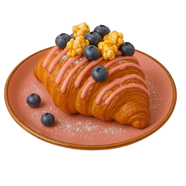 Croissant artesano bañado en sirope y cubierto con trocitos de pistacho tostado. Crujiente, dulce y con un punto salado que lo hace irresistible. Perfecto para los que buscan un toque gourmet en su desayuno.