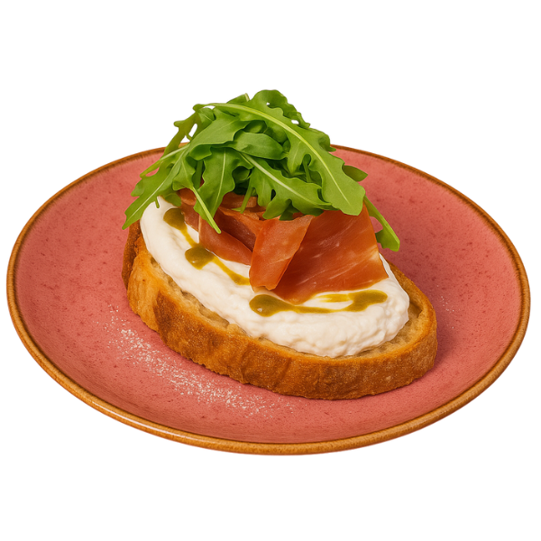 Pan tostado crujiente coronado con jamón ibérico de calidad, aguacate cremoso, huevos y un toque de rúcula fresca. Una combinación que conquista a primera vista y aún más al primer bocado.